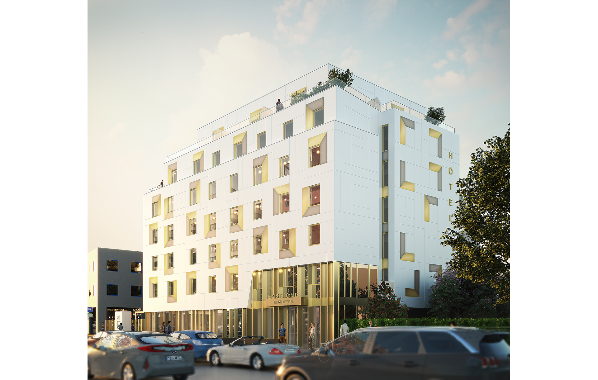 Situé à proximité du parc de la Villette, cet établissement hôtelier se veut être un véritable repère urbain, reflétant l’identité dynamique et créative de Pantin. La liaison avec l’hôtel existant, via le rez-de-chaussée, assure une continuité fluide entre les deux structures, renforçant ainsi l’intégration harmonieuse de l’extension dans le tissu urbain environnant.